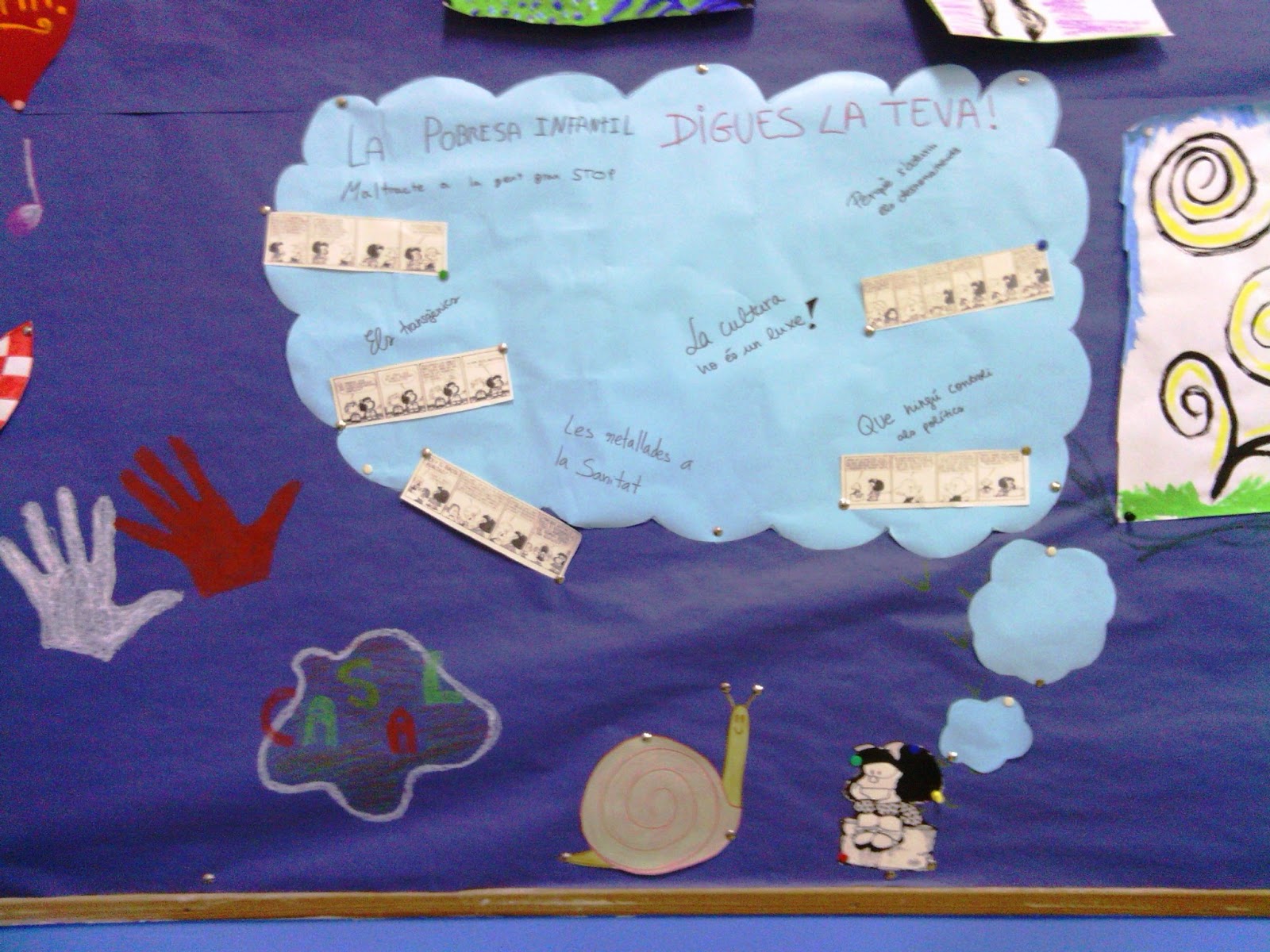 Després de llegir unes quantes tires còmiques de la Mafalda, cadascú ha escrit unes paraules dins la gran bafarada.